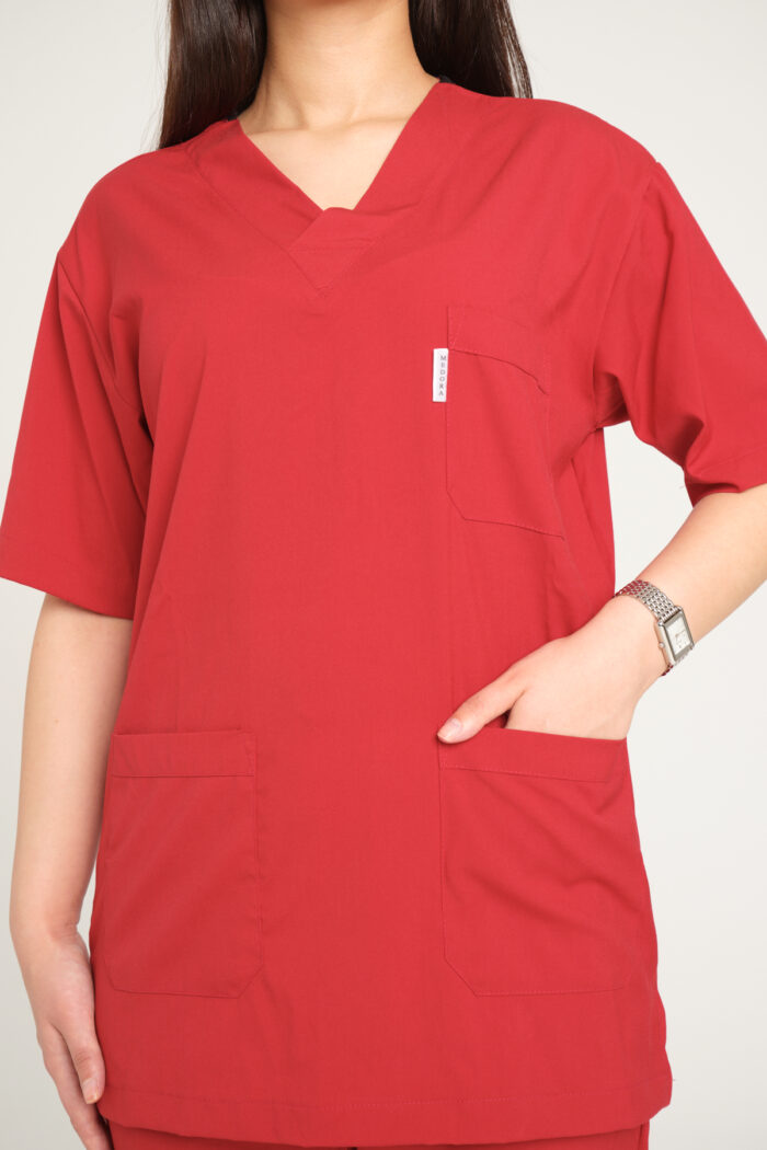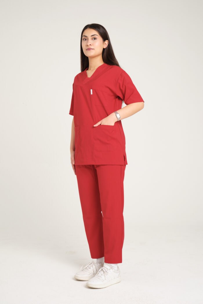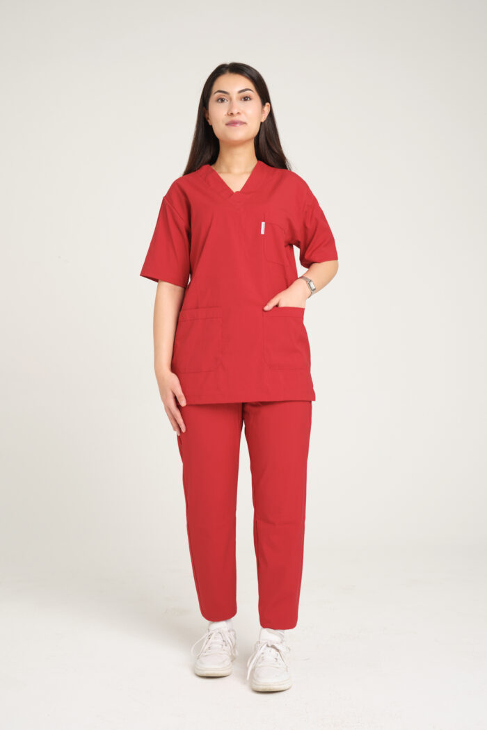 Nar Çiçeği Likralı Kadın Scrubs V Yaka