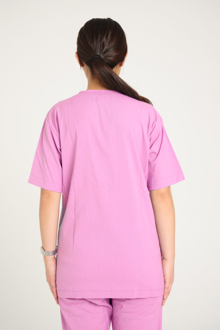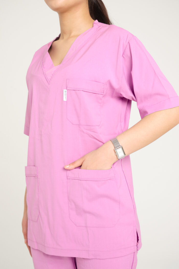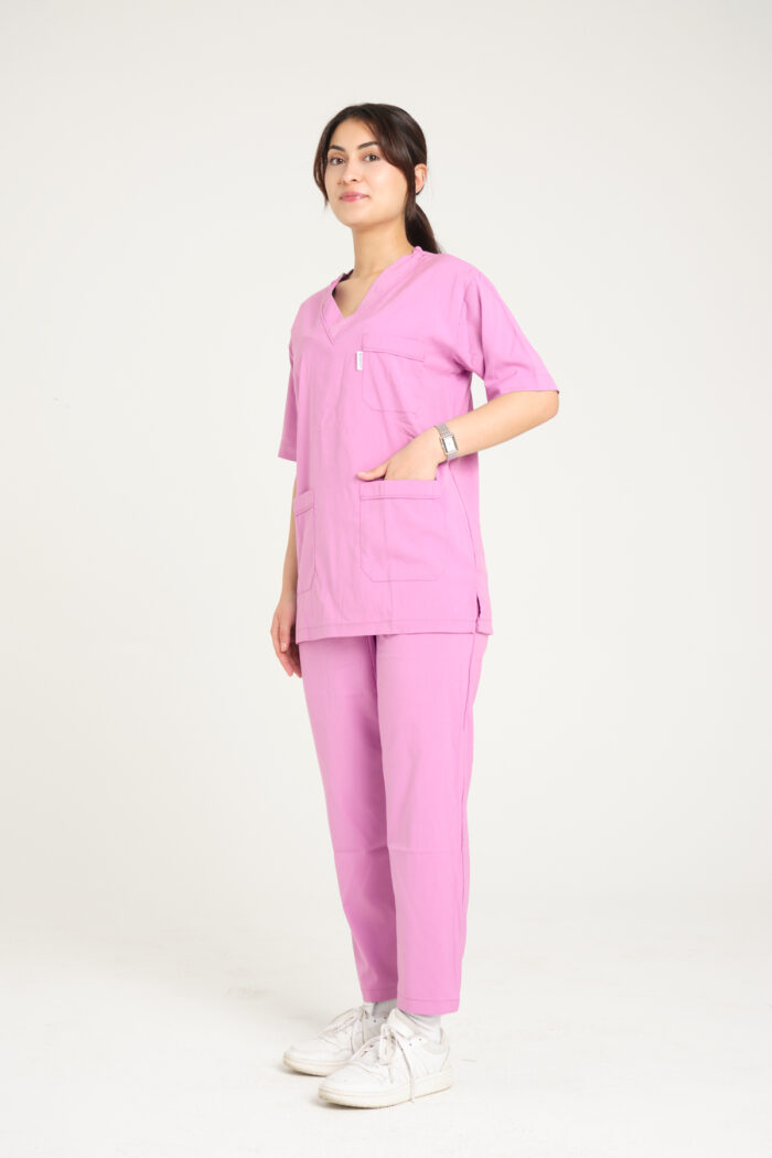 Pembe Likralı Kadın Scrubs V Yaka