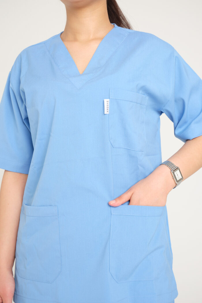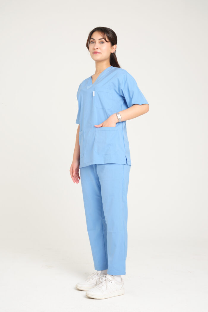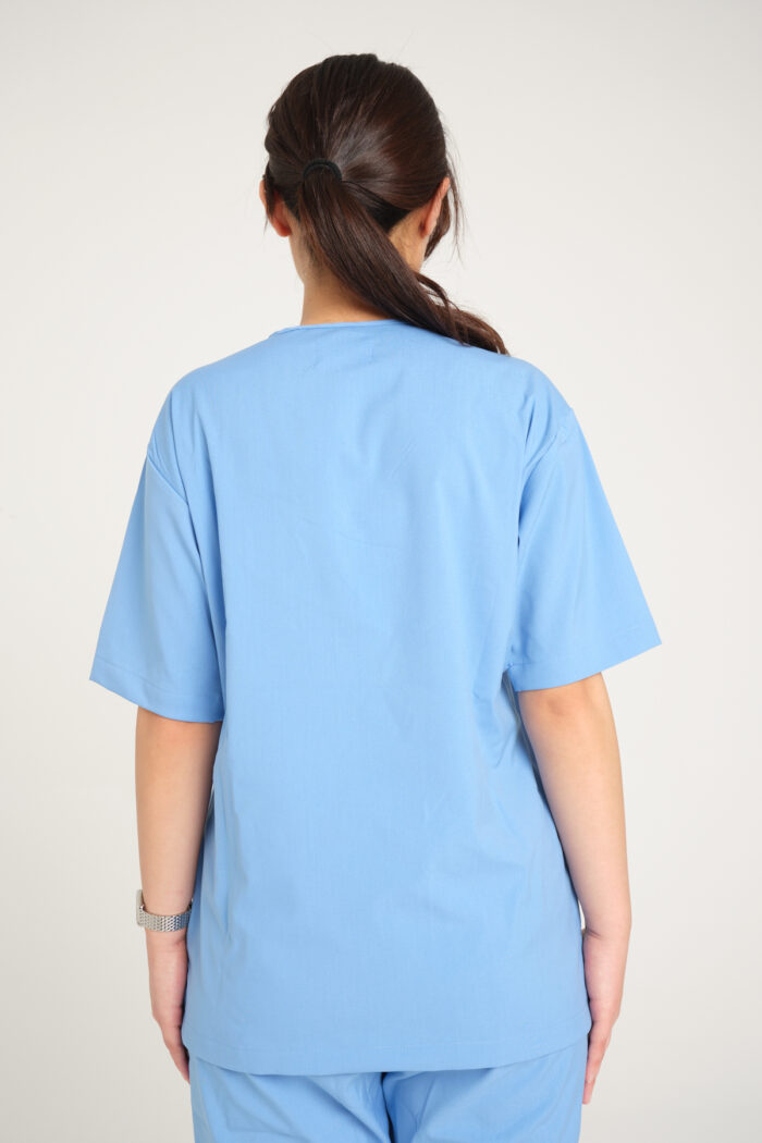 Turkuaz Likralı Kadın Scrubs V Yaka